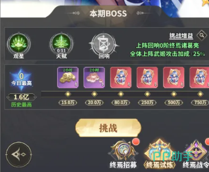 资源分配策略上,前期必须执行单核聚焦原则:所有经验丹、装备强化材料、升星碎片及突破资源,全部集中投入终焉吕布一人。其余武将仅需维持基础等级与防御属性,确保能有效承担对应位置功能即可。特别强调,诸葛亮为该阵容刚性需求角色,必须固定部署于1号或2号位——其技能提供的治疗与怒气回复效果,是吕布快速叠满怒气、稳定触发高额爆发伤害的关键前置条件。缺少诸葛亮将导致整体输出节奏紊乱。进入游戏中期后,可逐步推进“全终焉”阵容转型,非核心武将统一转化为升星素材,优先提升吕布及上述五人组的星级。