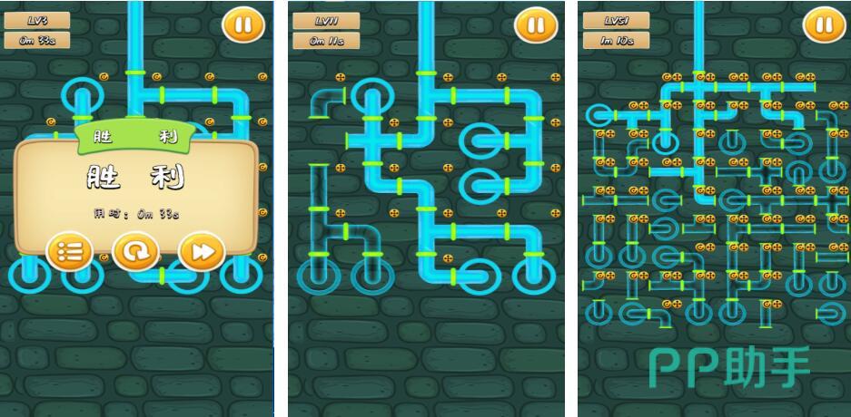 《水管接接乐》需要玩家通过旋转水管的方式来保证水流能够正确通过终点。手游设置了上百个关卡,每个关卡都有不同的玩法,且难度从简单到复杂呈阶梯式递增。与其他游戏最大的不同就是没有步数的限制,玩家可以在游戏中尽情的尝试多种不同的血管拼接方法,而这种模式在无形中降低了通关的难度,同时手游内还设有排行榜功能,方便玩家查看好友的成绩。