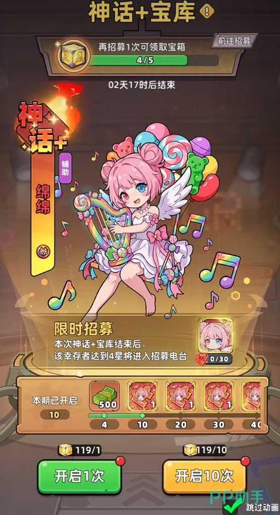 绵绵的角色设计融合了圣洁感与亲和力,身着轻盈羽饰,手持竖琴状乐器,可奏响彩虹音律为全队提供庇护。其稀有度为神话级,属于限定UP池专属角色,抽取途径唯一——仅可通过参与当期限定神话卡池获得。该卡池中,单次抽卡有概率直接获得绵绵本体,但更常见的是获取碎片;累计抽卡次数越多,额外赠送的绵绵碎片数量同步增加,为高星养成奠定资源基础。