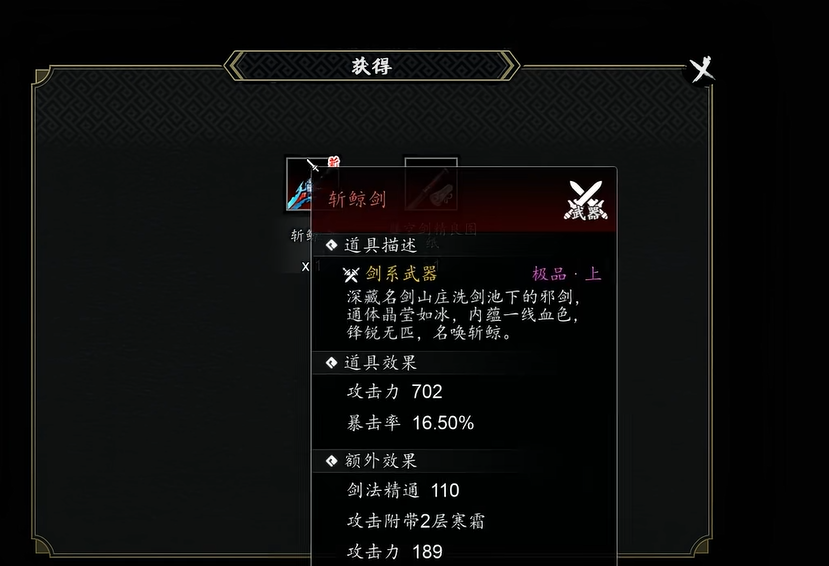 打完之后记得存档,然后注意补一下血蓝。这里有个坑,下一场战斗不会自动回复状态,如果不提前补好,很容易就扑街了。往前走一小段就会触发三连战。第一战就算赢了也算输,不用太纠结。第二战如果是非完美路线,战后罪僧会断臂挥刀。第三战打完可以拿到【紫微星图】【曼陀罗花种】【九龙玺】。非完美路线还能多拿【斩鲸剑】和【腾空剑精良图纸】,斩鲸剑真的很强,如果有人想传承天机剑或者天山剑,可以故意在天佛窟不走完美路线,专门为了这把剑。
