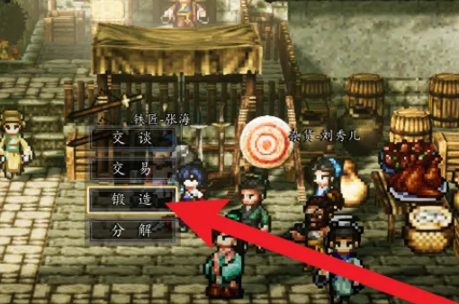 首先,玩家要进入游戏界面,找到铁匠张海。这个角色在游戏中,是个最主要人物,因为他负责各种锻造工作,你会经常和他打交道。接下来,走到靠近铁矿的位置,这里会出现一个选项,点击“锻造”,就可以进入锻造界面。