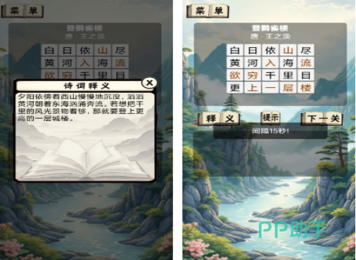 与诗词接龙玩法有关的游戏,涵盖了很多小学的诗词内容,无论是任何时代的诗人所完成的作品,都会在每一个题目当中有缺失的几个文字,需要根据给出的文字以及诗词的题目或者是作者的名字填写,如果能使每一个诗词成为完整的,那么就可以通过关卡,顺利通关以后,还会对诗词释义进行详细的显示学到更多与此有关的知识。