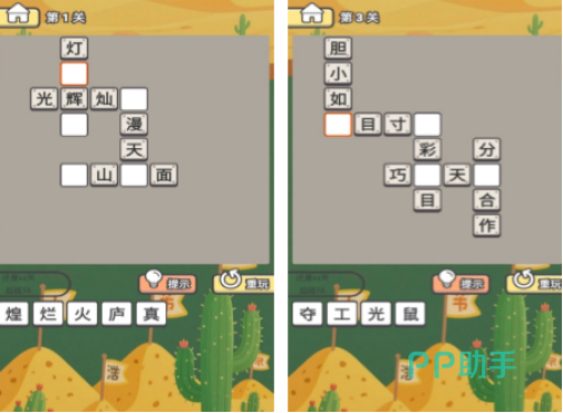 与成语有关的游戏,除了通过不断的闯关任务以后,自己可以不断的完成升官,从古代的小乞丐渐渐的成为小状元,甚至是其他的身份,也需要玩家在填写文字的时候,掌握各种常见的成语。无论每一个关卡当中的布局是怎样的,填写的数字是成语当中的任何位置,大家都可在给出的文字当中运用尝试,或者是技巧来完成解答。