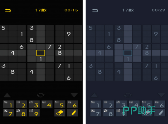 小学生都能完成挑战,经典的数独手游,给大家提供了7种不同的难度,无论大家挑战的过程当中是选择极易容易上手的,或者是难度特别大的,大家都可以在这款简约甚至是随机的游戏当中,利用随机生成的题目,在无限的数独谜题当中去完成闯关的任务。每一个方格填写数字的时候,都要对横竖列已经给出的数字仔细的观察。