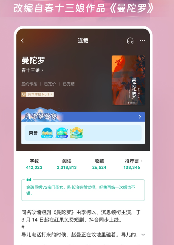 延续了豆瓣一贯的文艺气质,主打悬疑、女性、幻想、文艺、历史五个方向,书单推荐优先展示八分以上的作品,选书的时候不容易踩雷。正版图书将近十万种,同时有三千多名青年创作者在平台写原创,超过一半免费看。排版用了精选字体,行间距和页边距调得比较舒适,接近纸质书的感觉。