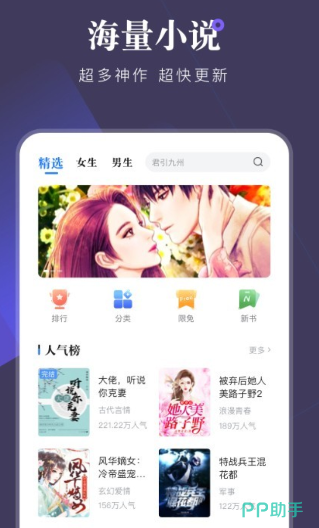 签约了超1.5万名言情作者,书库收录30万册精品内容,从穿越宫廷到职场霸总,题材方向基本都是女性读者偏好的那几类。平台旗下多部作品已被改编成影视,读者能在上映前率先看到原著内容。书架支持列表和网格双模式切换,更新提醒实时推送,字体背景和翻页动画都能自行调整,夜间护眼功能配备完整。