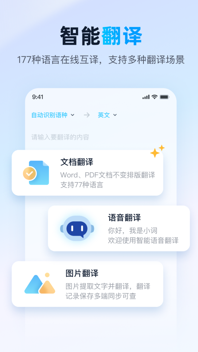 词条数量超过两千万,覆盖范围从日常口语到学术专业术语都有涉及。拍照翻译对菜单和路牌的识别准确率不低,出行场景下拍完就能看到结果,省去了手动输入的麻烦。语音翻译支持多种语言,对东北腔和关西腔这类方言口音也有一定适配,在嘈杂环境里识别稳定性也保持得不错。