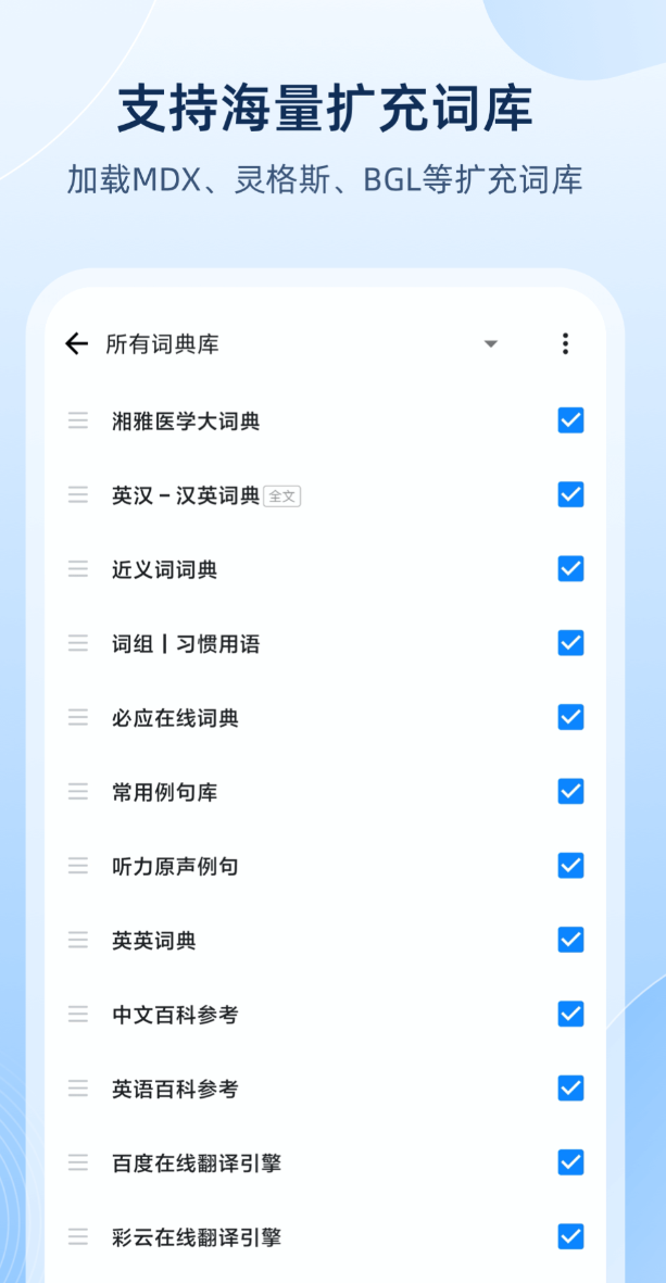 词库可以自己扩充,朗文、牛津这些版权词典只要格式支持就能导入,词库内容不受平台限制。跨软件取词功能叫LightPeek,在任意应用里划词都能即时弹出释义,不用来回切换界面。拍照取词识别准确度提升幅度明显,拍资料或者文献时基本能直接用,不用反复修正。没有广告打扰,启动快,功能干净,用起来不会有多余的东西挡着。