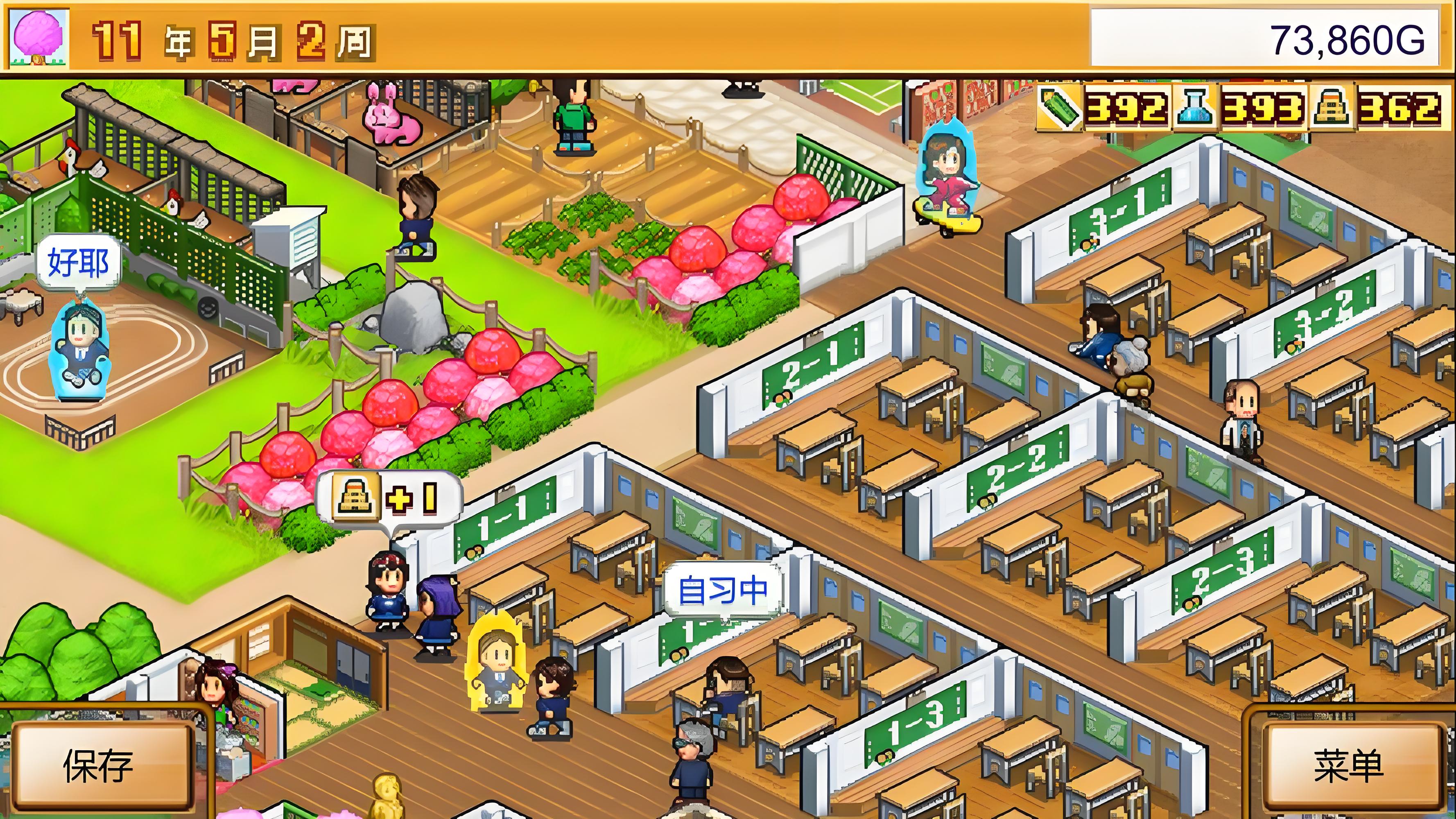 游戏直接将青春校园的烟火气,塞进了像素屏幕里。作为校长,你可以亲手搭建教室、食堂、办公楼、宿舍等,直接圆了当校长的梦。看着学生从入学一步步成长,考大学,甚至还能磕到学生满满的恋爱。重点抓学生特长培养,根据不同的特长安排学生的成长也是作为校长的责任。汉化版将社团的名称、学科词条都做了贴合国内的阅读习惯,每个像素人都好像真的有了自己的青春。