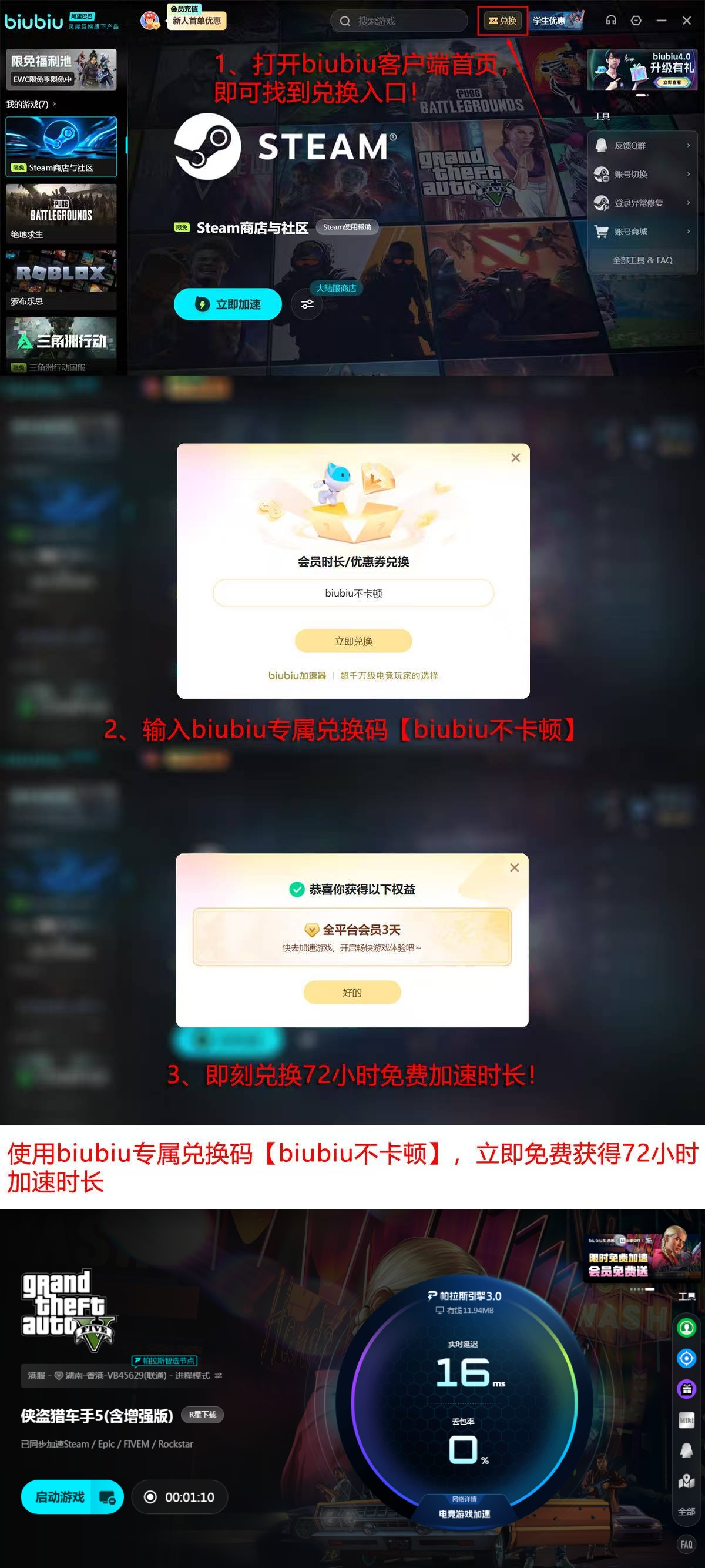 GTA5 在 Win11 系统中运行时偶发闪退,主要成因集中于文件校验失败与网络传输异常两类。前者推荐使用官方平台内置修复工具;后者建议部署 biubiu 加速器——依托阿里巴巴灵犀互娱技术底座,集成帕拉斯引擎 3.0 与职业级实测调优,新用户注册即享 24 小时免费加速,输入礼包码【biubiu 不卡顿】还可叠加 72 小时额外时长。
