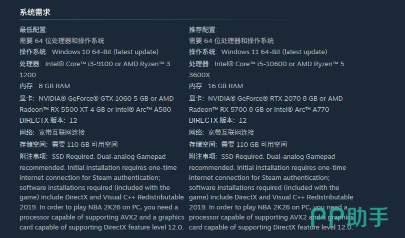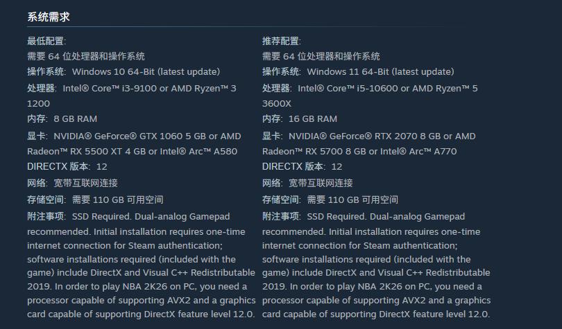 根据官方公布的最低及推荐配置要求,NBA 2K26需搭载Intel Core i5-10600处理器、16GB内存、NVIDIA GeForce RTX 2070(显存8GB)及以上显卡,并预留至少110GB可用存储空间。此外,游戏全程依赖网络连接:不仅需登录2K账户激活,还内置D加密机制(每24小时自动验证5次),并集成内核级反作弊系统,持续进行正版授权校验与后台云同步。一旦网络延迟高、丢包率上升或连接中断,极易触发强制退出流程。