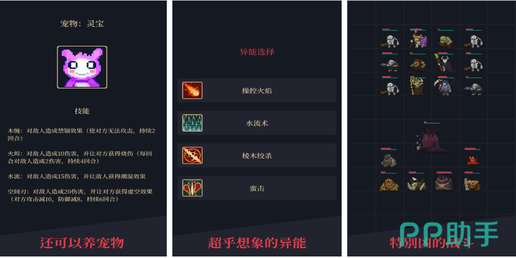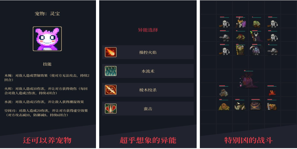 本作采用文字交互式挂机框架,通过指令选择驱动异能释放、任务执行与宠物培育进程。玩家可自由配置异能组合应对不同文本化战斗场景,宠物系统支持属性相克、技能联动与外观定制。整体设计突出轻量化与高自由度,适合碎片化时间体验,同时保留异能题材应有的成长纵深与策略维度。