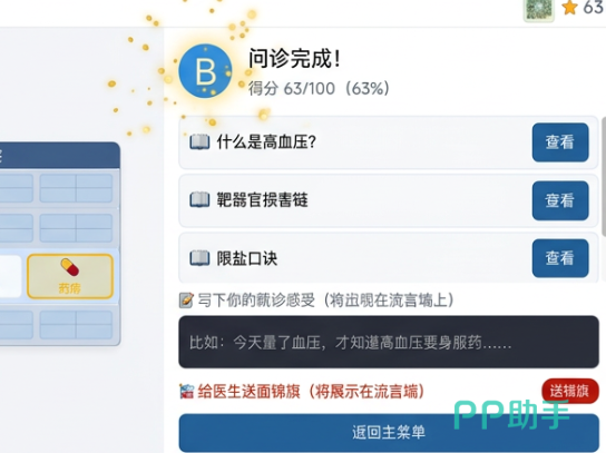 除常规问诊流程外,游戏内嵌入多层级病情模拟模块,涵盖慢性病管理、急性症状鉴别等典型场景,有效锻炼玩家的临床思维与决策能力。内置流言墙社区支持用户分享问诊策略、复盘诊断思路,并可通过赠送锦旗等形式实现正向互动。该社交机制不仅增强用户粘性,更助力玩家将虚拟经验迁移至现实医患沟通中,提升主动健康管理信心。