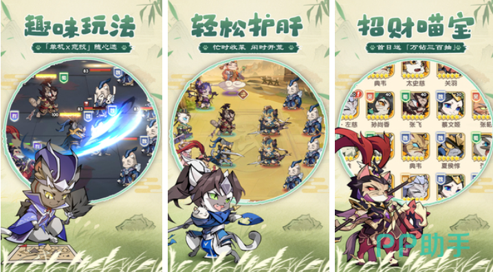 竖屏轻量化三国题材休闲策略游戏,全角色采用Q版猫系形象设计,面部微表情支持32种情绪状态识别。战斗系统融合塔防与卡牌策略,每张武将卡含属性成长曲线与羁绊激活阈值。关卡编辑器支持玩家自定义剧情节点与难度参数,UGC内容经审核后可进入官方赛季玩法池。