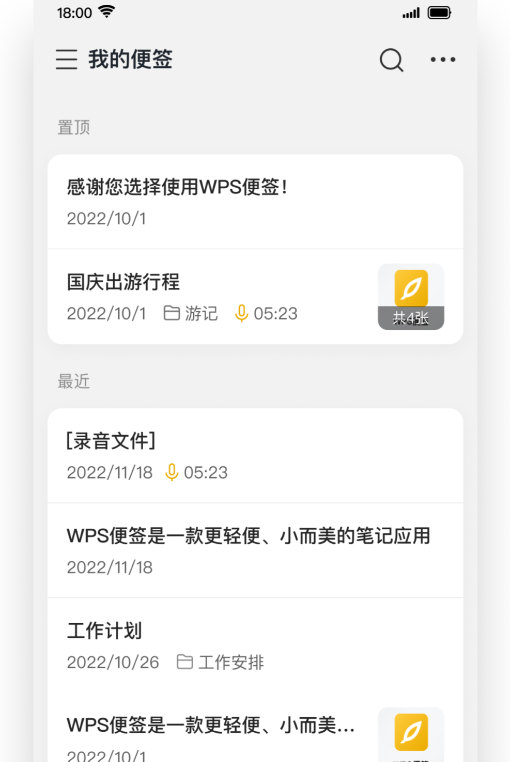 WPS便签依托WPS办公生态的成熟技术,打造轻量高效且贴合日常的随身记录工具,界面极简清爽无广告干扰,操作路径直观流畅,打开即可快速录入文字、待办清单、高清图片与手写内容,轻松实现杂志般规整美观的记录效果,非常适合新手使用。