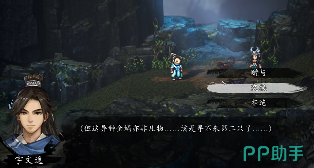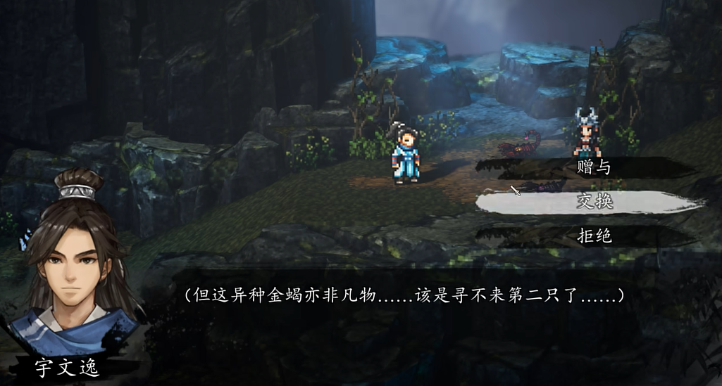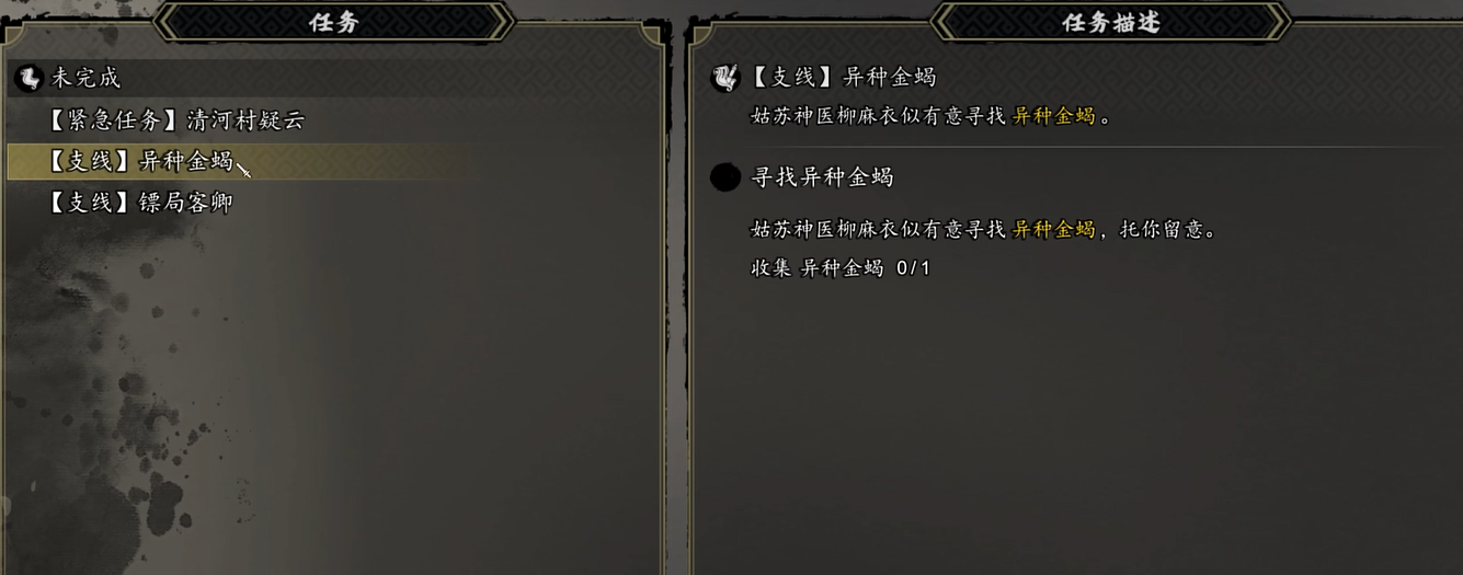 如果把异种金蝎交给商人,玩家能拿到拳法方面的奖励,后面还会接到和霹雳门有关的委托,任务内容里就会引到寻找人面鬼蛛。要是把异种金蝎交给柳医生,得到的奖励会变成剑法方面,同时也会从另一个人那里接到找人面鬼蛛的相关内容。也就是说,这两条路虽然前面给的奖励不一样,但后面都能走到人面鬼蛛这一步。这里要注意的是,如果走了别的线,后续就可能和这件道具错开,影响后面的推进。