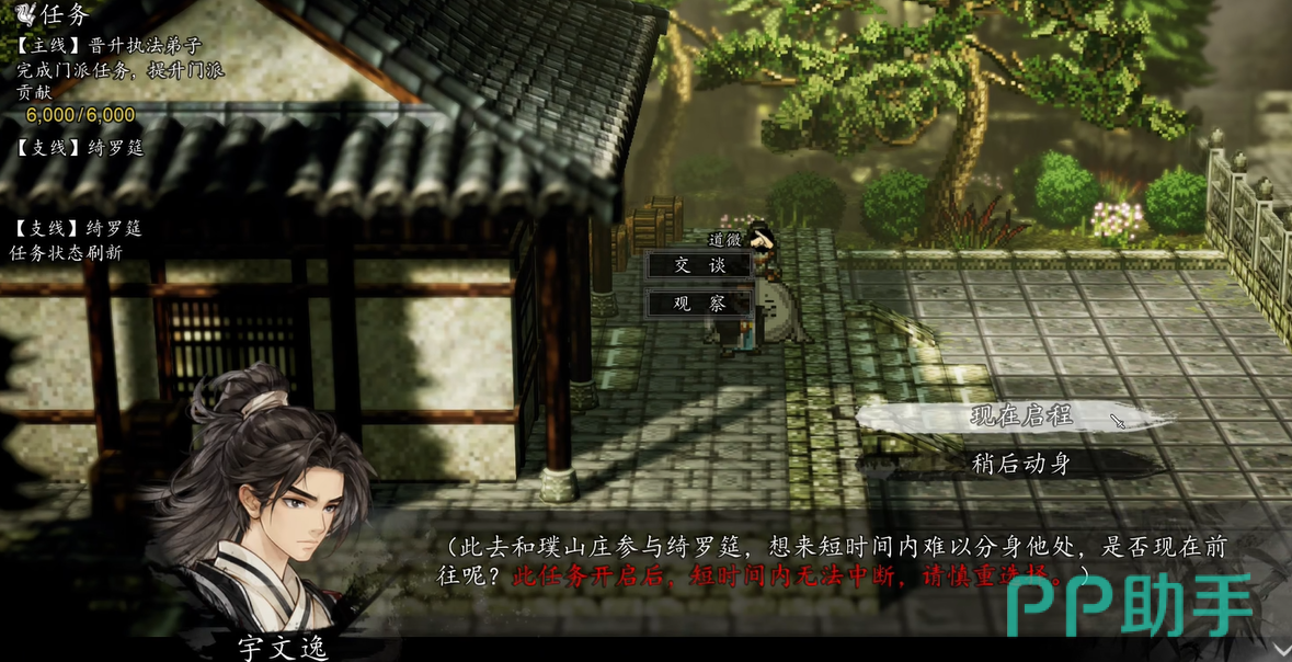 如果走的是【药圣·莫离】这条线,那前面还有几段可以先补掉。先去谭城找栾琼,对话后会开出一段剧情。接着去辽城,先和小豆子说话,再去找李大虎,做完这段后可以拿到【壬水丹】。之后再去无名岛,这里也有内容能触发,包括【商亭苧和步微月躺在摇椅上】的剧情。和商亭苧对话后,可以拿到她送出的丹方。继续往下还能看到【商亭苧指导宇文逸炼药】的内容,并得到【炼丹简札】。不过说实话,这一段不太建议带药圣直接进绮罗筵,因为到了武当祖师殿会有剧情,结束后药圣会暂时离队。要是走的是【药圣·冷无情】那条线,也不用急,等南疆主线结束,药圣正式加入后,这前面三段剧情一样能补。