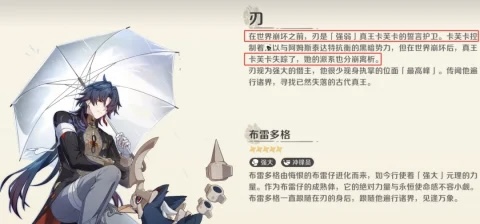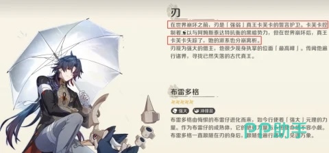 也是通过刃的介绍才了解到他的真实身份,而刃这个角色,也是卡芙卡的誓言护卫,那么在世界崩坏之前,卡芙卡这个角色,能力是非常突出的,可以和阿姆斯特来进行抗衡,随着崩坏之后,角色就此消失,如果大家想要详细的了解这个角色的背景,需要加几个崩坏IP的内容,全部都串起来。