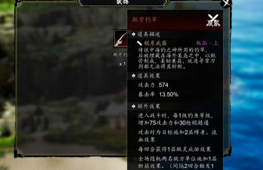 霓光岛上有两个箱子,一个就处在中部高地流浪武士身后,另一个,则得从高地后面,再绕过去,朝着底下走能找到。另外这个岛有个隐藏箱子,需要蟹岛的线索,同时钓鱼等级要到七级以上,开出来的是鲲骨钓竿。这根钓竿不只是装饰,钓鱼等级加属性的效果对队友也有效。拿到之后回蟹岛找钓鱼翁,他会给一本价值五百钓鱼经验的书。