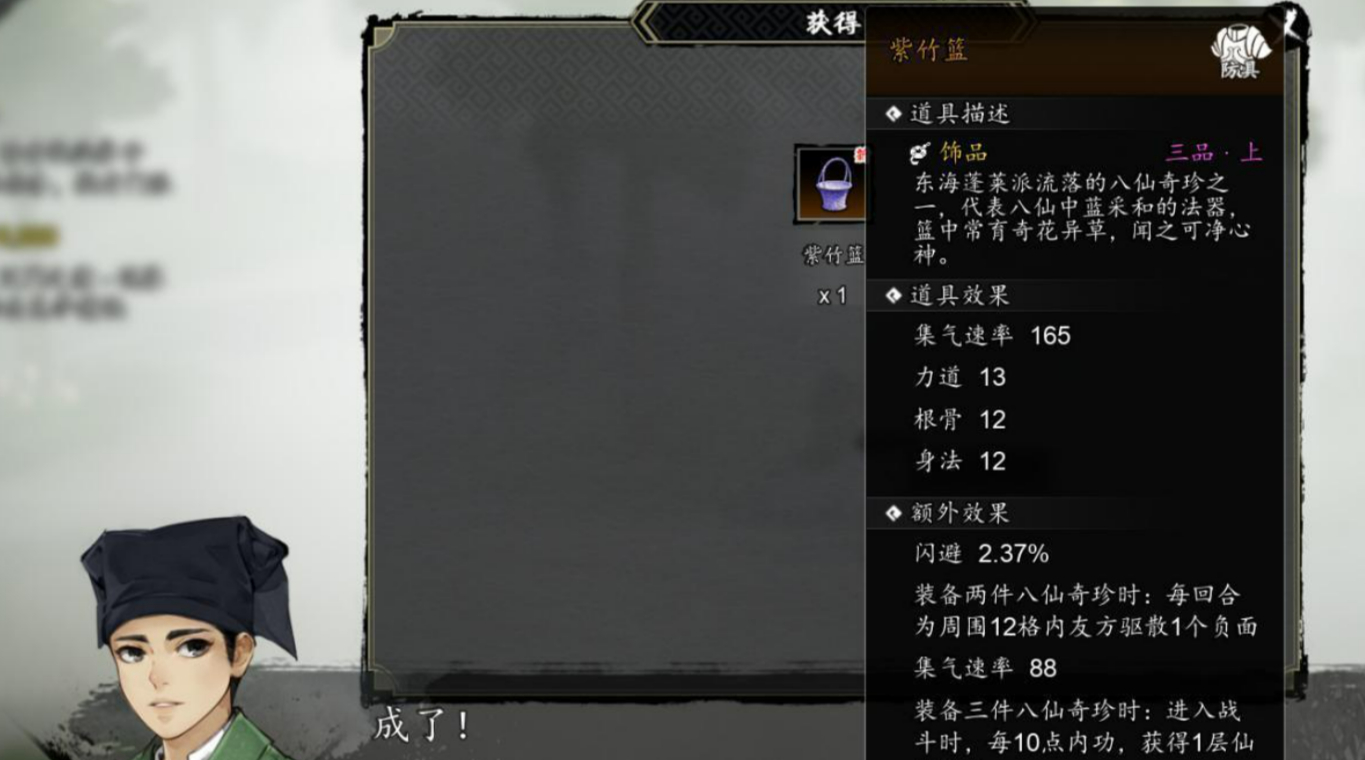 八珍集齐之后,去雾岛门口右侧找李清浊,前提是品剑大会剧情已经完成。他会把这些残破的八珍做成装备,七件都能做,所需材料大多不难找,唯独紫竹篮需要三种花,分别是十八学士、魏紫和别角晚水。十八学士切磋慕迟能拿,魏紫要等肖寒光踢馆少林那段,大白夜探之后的单挑,别角晚水,在追击阎浮镇杀人魔时的,临时地图箱子里。还差一种花,要去下一章游仙岛猴山。另外蜃楼海域的宝贝怪物,和林天寒也会掉落这几种花,实在缺货可以在那里刷一刷,以上就是关于逸剑风云决手机版蓬莱八珍位置的全部介绍了。