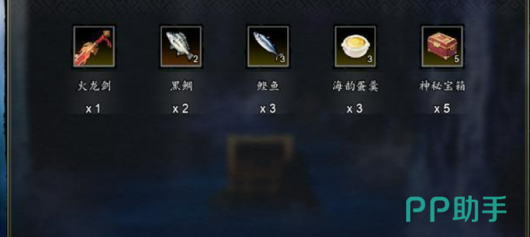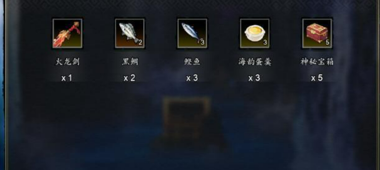 我们需要从左上角的岛开始出海,一个个往下扫。玉壁岛上有三个箱子,一个在椰子树后面,再往上走还有两个,其中一个里面装的是火龙剑,八珍之一。蟹岛同样三个箱子,进门往上走,钓鱼翁后面草丛里有一个,左边树后面还有一个。这个岛有个细节,如果不断和钓鱼翁对话的话,然后用鱼换东西,就能拿到海外钓竿,并且得到鲲骨钓竿的线索。看到左下的鱼,再点钓鱼,会在鱼肚子里翻出一把钥匙,用来开左下那个上锁的箱子,里面是葫芦,也是八珍。