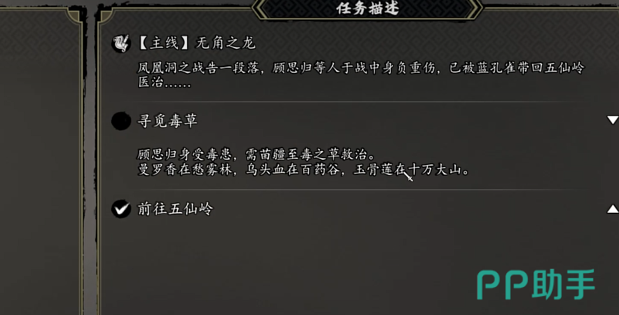 接着会进入欧阳雪和顾思归的治疗任务。采药地点有三处,按自己当前进度来选就行。治疗完成后,欧阳雪属性会提高,顾思归也会增加好感。之后记得和五仙教成员逐一切磋,这里还能补到图纸和秘籍。