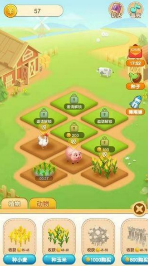 极易上手的操作方式,大家可用手指完成种菜或者是收菜的任务。每次收菜之后都可以获得无尽的成就感,或者获得了大量的金币奖励。在简单几块土地当中,大家只要点击种小麦或者是种玉米等不同的方式就可以完成种植,而其中上方也会看到各种指令,比如需要浇水的时候会弹出水瓶,大家只要点击就能够完成一系列的操作。