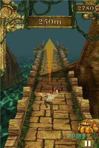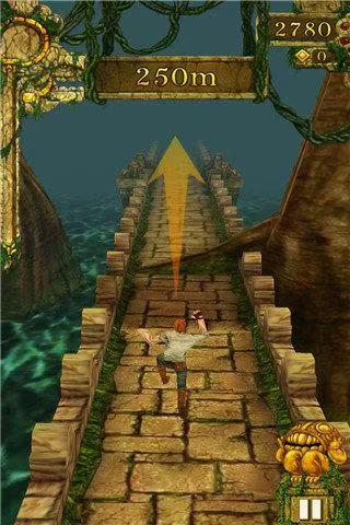 这是无尽跑酷类游戏的鼻祖之一。玩家是一名冒险家,在古老的神庙中夺宝后,你被一群恶魔追赶,必须一路狂奔逃跑。游戏展现的是奔跑的3D视角,玩家通过手指的滑动来控制角色左右移动、跳跃、下滑等来躲避各种障碍物,同时倾斜手机可以让你收集到金币,这些金币可以让你在商店中购买各种道具,以此提升你的最高游戏记录。