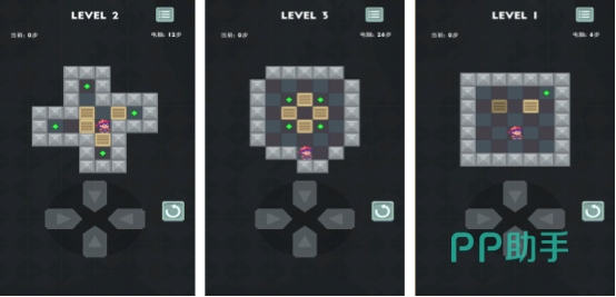 有多个不同难度的等级,从简单再到高级应有尽有。在关卡开始之后,就会看到箱子随机摆放在那里,通过上下左右正确移动的方式就可以将箱子推到指定的。位置上,但是也需要做好合理的规划,稍有不慎就会推到死胡同。
