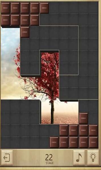 游戏把拼图和消除结合在了一起,玩起来非常的令界面分上下两部分,上面是黑方块拼起来的空白区域,像一张没有画完的画布,下面是各种不同的形状模块,玩的时候需要仔细观察,把下面的模块拖到上面,对准空白的地方放好。只要有一行被完全填满就会自动消除,不用手动操作,大家玩的时候都会一点一点的慢慢拼,看着空白的地方越来越少,消除的次数越来越多,到最后一幅完整的图案就会慢慢的显现出来。