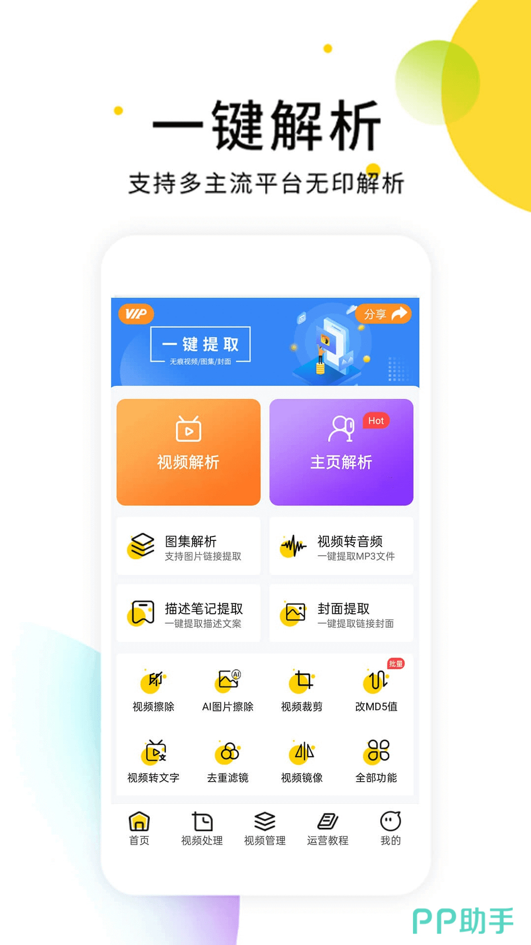 一键提取无水印的高清原片,还支持各大平台的链接分析并提取素材,只需简单复制视频链接即可导入。处理好的作品,可在线的添加自己的水印文字,或者去除片头片尾,为原有的文件瘦身。