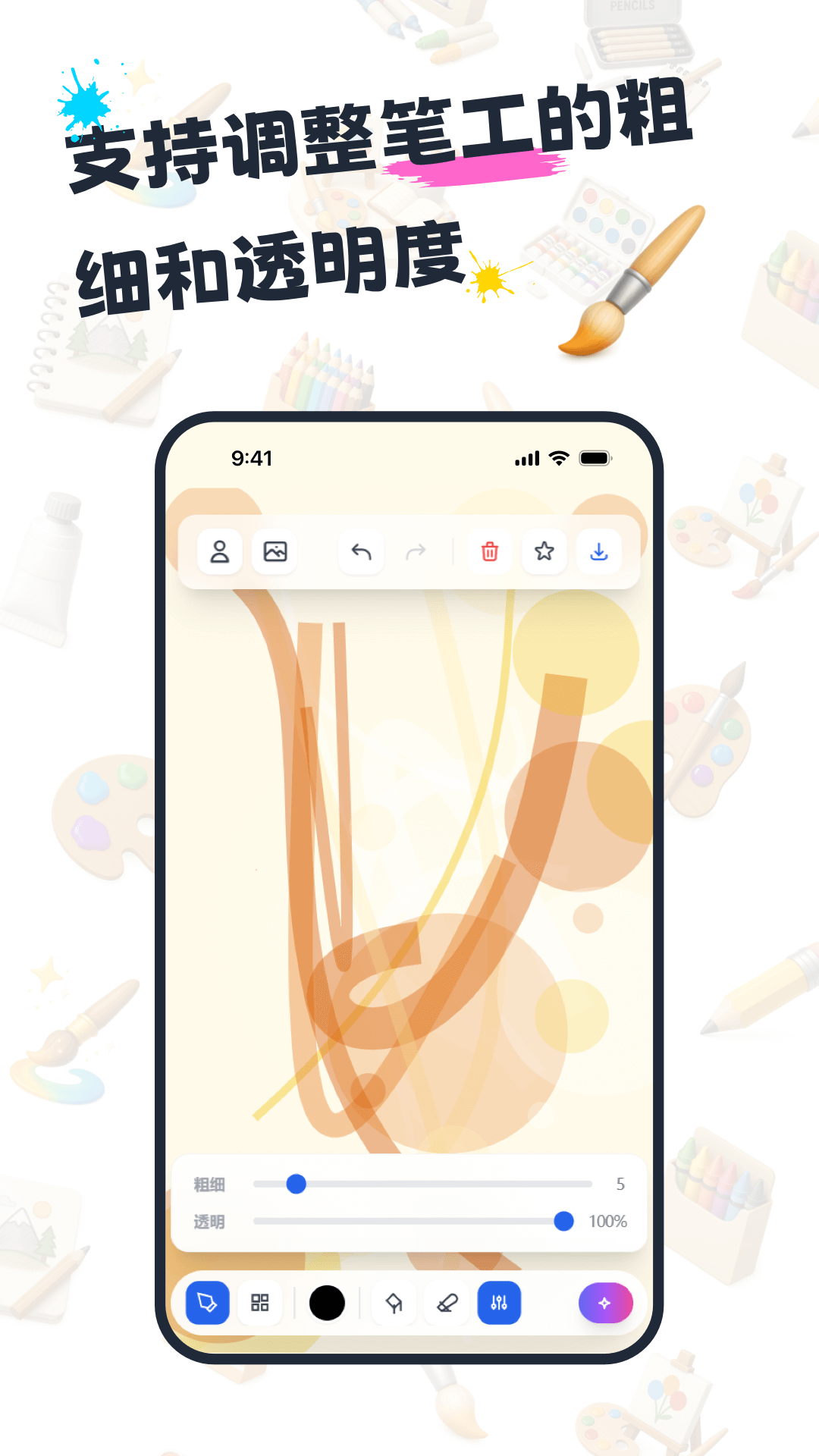 你可以多人同时绘画,打造出更丰富的作品。它内置了多元化的话题,你可以选择喜欢的来玩,同时支持调节大小和不透明度,以渲染出想要的艺术风格。它最大的亮点是支持音频编辑,有利于打造饱满的内容。