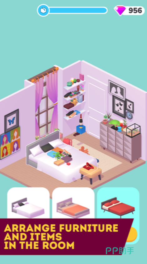 每一个房间的装修素材和主题都是可以让玩家自行去挑选的,房间的风格也是可以自定义去设计的,每一个墙纸以及家具的挑选,能够让玩家按照自己的喜爱去搭配。作为一名优秀的房屋设计师,需要根据房屋的具体情况而为他们搭配合适的装饰,才能够让房间看起来更加的温馨。每装饰完一个房屋之后,便会获得一些钻石,利用这些钻石可以去解锁一些新的家具。