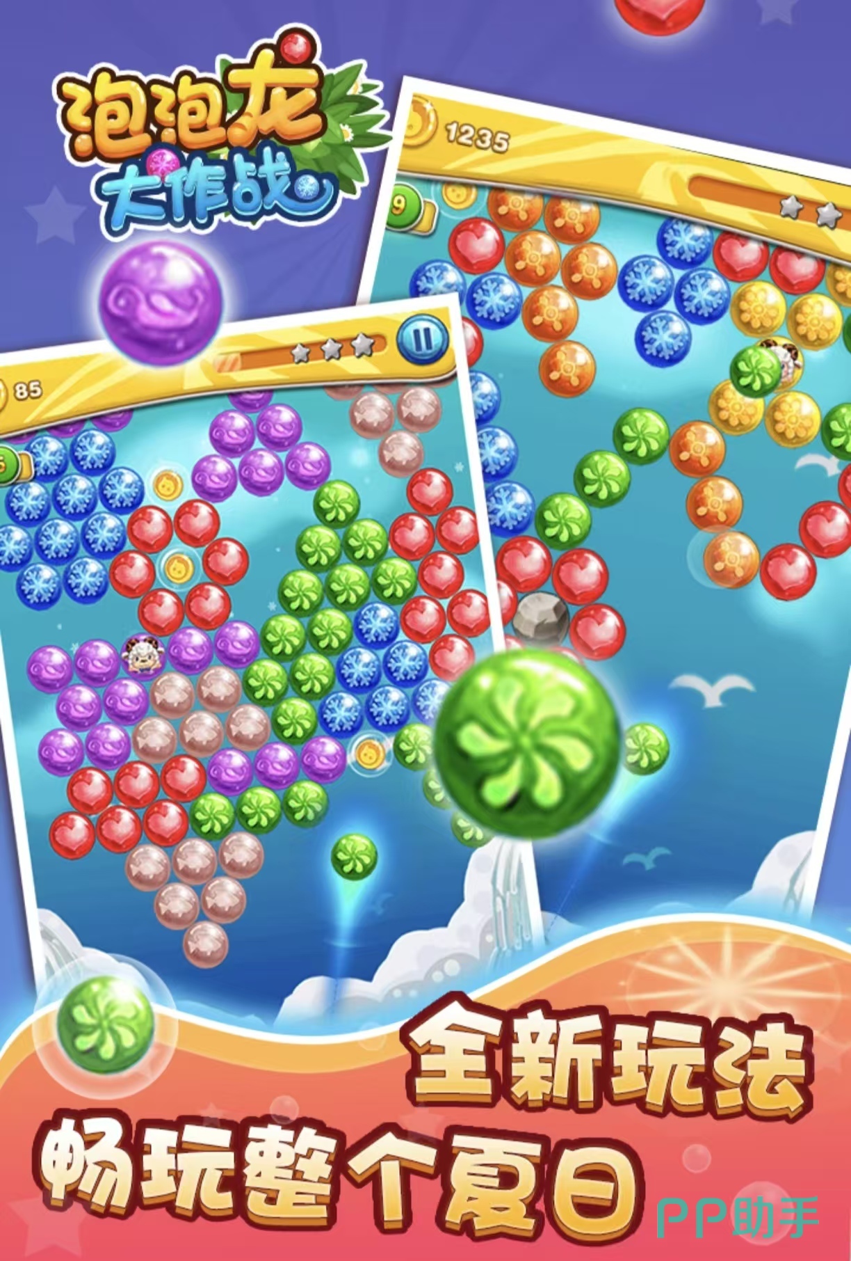《泡泡龙大作战》这里营造了舒适可爱的画风,玩家要体验到泡泡龙的消除玩法,利用泡泡不断的向上进行射击。设立的每个关卡都有精心的布局,可以利用各种辅助的道具。消灭掉宠物还会增加额外的分数,这里的关卡有不同的进度,可以用奖励购买道具等物品使用。将关卡内所有的障碍全部清除,射击时要尽量瞄准,选择合适的时机发射。