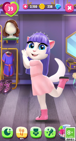 能和安吉拉一起互动,画面是卡通风格的,安吉拉能学着人说话的声音回应,游戏里有好多不一样的好看衣服,给安吉拉打扮的时候直接点一下就能穿上。平时还能在屏幕上跟安吉拉做各种互动,就连一起跟着唱唱歌都能实现,简单操作就能和安吉拉玩到一起,不管是打扮还是互动都能玩得很尽兴,不同的玩法能带来不一样的趣味。