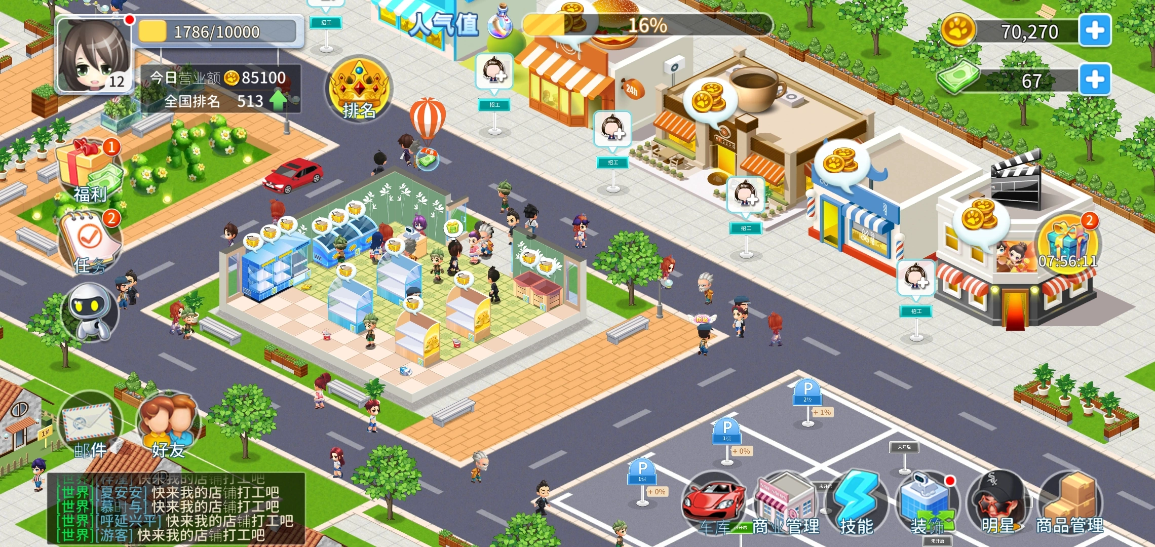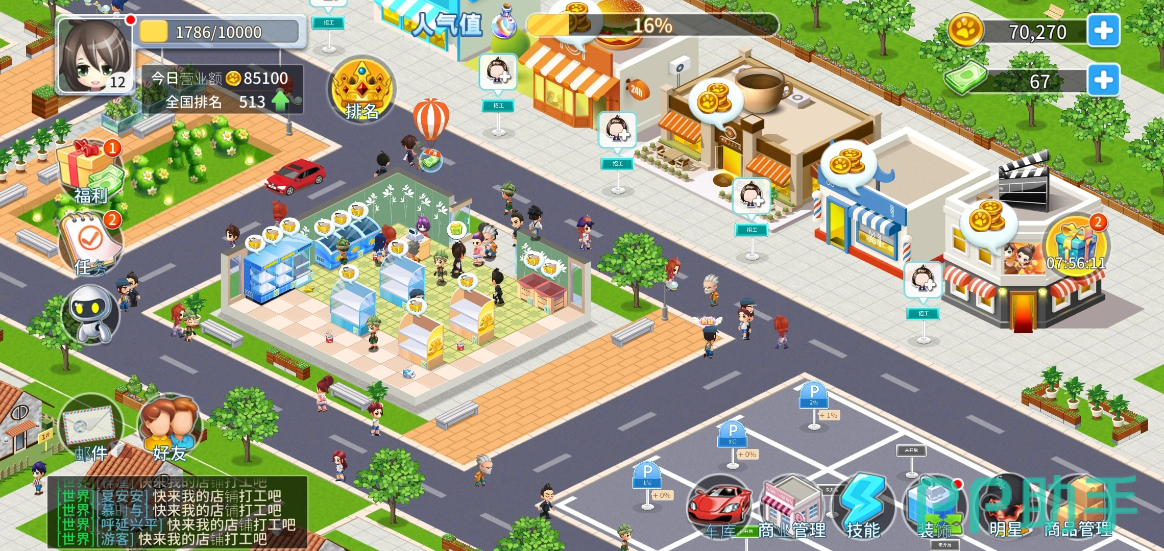 论从什么都没有到成为一整个连锁店的老板能有多大的成就感,在这里就能体验到!游戏内完整复刻商店采买、补货、定价、员工管理等完整链路,仿佛无痛开了一家真实的便利商店,除了基础的销售模式外,玩家还可以通过升级商品、萌宠揽客、扩建商店等方式提高店铺吸引力,游戏画风卡通可爱,非常适合女生哦。