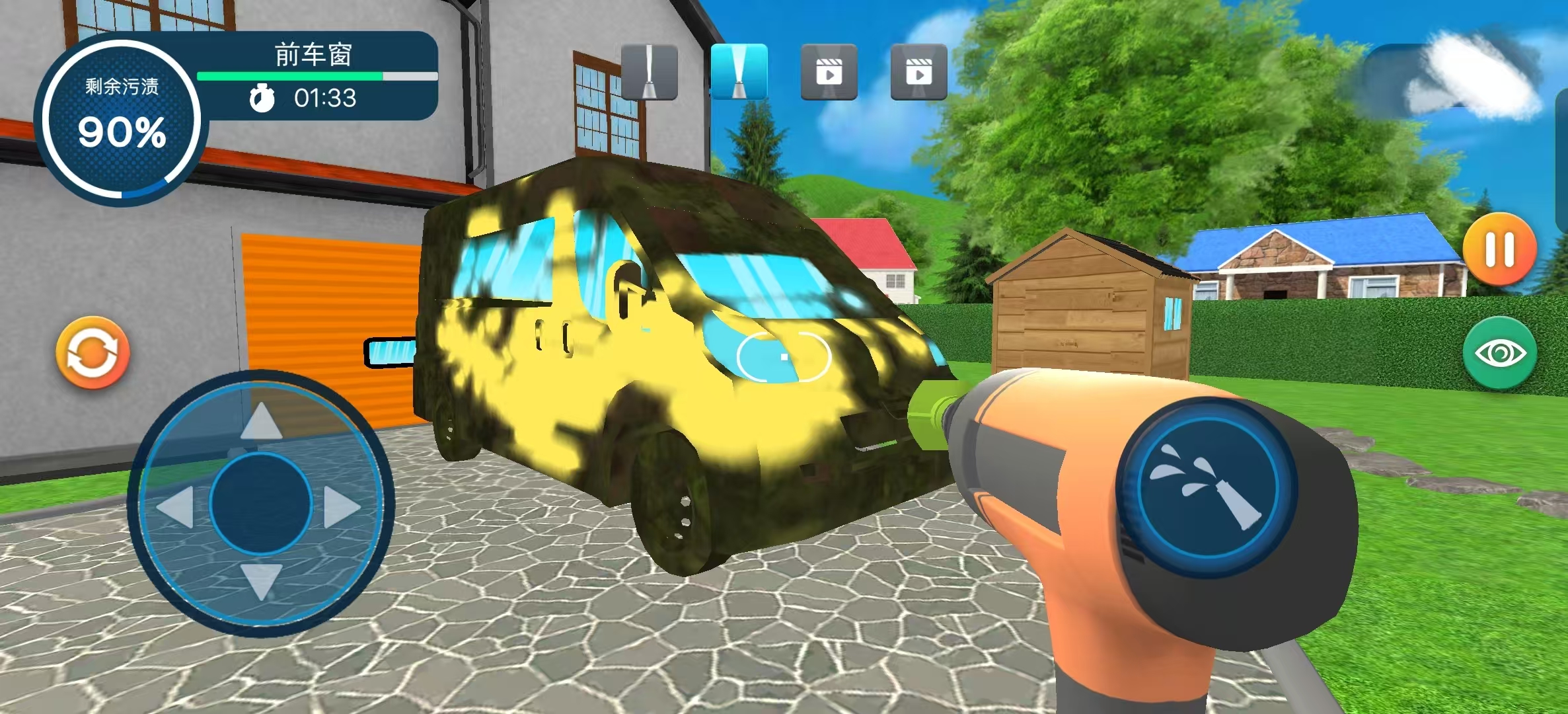 众所周知,水枪也有高低压之分,也就是水枪的出水速度和出水量。那么在高压水枪模拟器中,玩家将化身家里的洗车工,利用高压水枪将沾满泥土的汽车洗刷刷,恢复原来干净的模样。玩家在清洗过程中可以通过不断转换视角,将汽车上下左右全都冲洗一遍,在根据上方提示观察汽车是否完全还有泥巴残留没有清理干净。