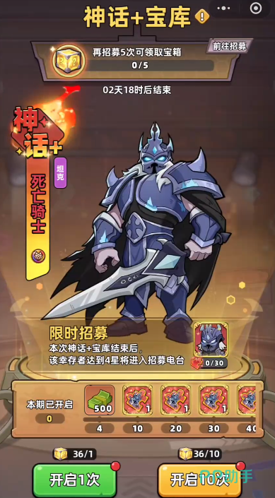 游戏里玩家可以收集大量角色,每个角色的能力各不相同,在正式挑战的过程中,要根据实际需求对角色自由搭配,死亡骑士是游戏里的神话级别角色,角色较强防御能力,让他成为队伍中的坦克,想要获得死亡骑士,玩家需要参与游戏里的限时招募活动,在神话加宝库招募活动中,每个成员都需要完成特定招募任务,每次完成任务都可以获取宝箱,通过消耗相应的宝箱数量,玩家可以直接招募,招募过程中会不断获得角色碎片好,集齐所有碎片之后能顺利领取角色,要想获得强力坦克的成员,可以去参与游戏里的特定玩法,领取死亡骑士。