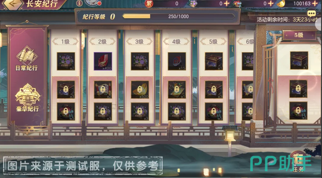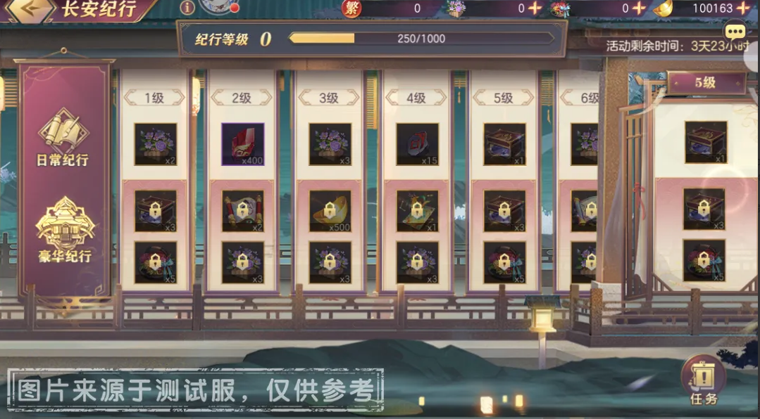 活动还有「长安纪行」,完成纪行任务积累探索度,免费档可以拿日常奖励,98元解锁豪华纪行后奖励翻倍,128元的豪华纪行礼包还会直接提升1万点探索度,附带元宝、烟花礼盒和高级花篮,推进速度快不少。