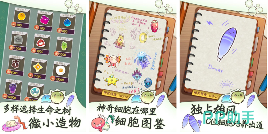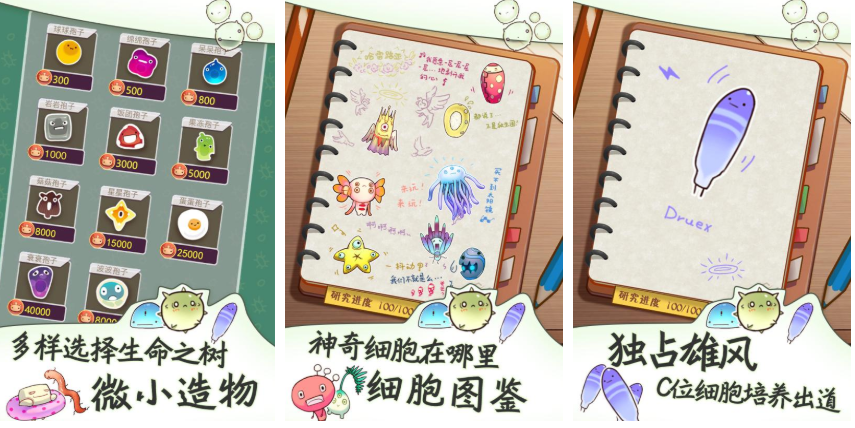 细菌、细胞都是属于微观才可观测的事物,对于宏观世界的进化玩家们可能见证的比较多,这反而让玩家们对微观充满了兴趣,游戏的画风是非常治愈的,玩家们在游玩过程中只需要将孢子细胞等等放入培养液就可以创造出各种各样的细菌生物,每一次的实验结果都将记录在日记之中,而玩家们在边记录的同时,还能够随时观赏到细菌们的专属故事。