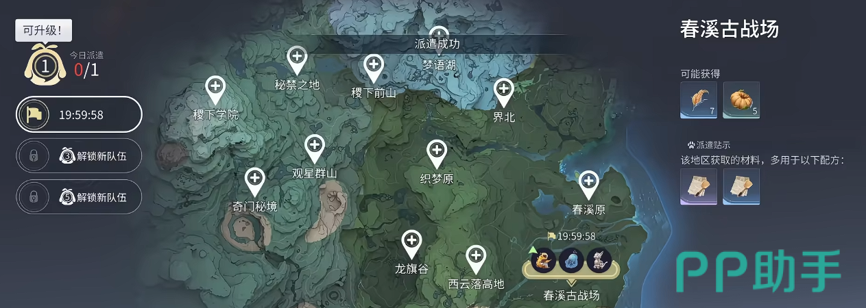 资源采集环节引入智能派遣机制。鉴于家园建设所需木材、矿石、织物等材料种类繁多、获取周期长,系统支持将已解锁角色指派至不同野外区域执行自动化采集任务。派遣时长、角色属性与目标地点共同影响产出效率,合理配置可显著缩短基建进度周期。