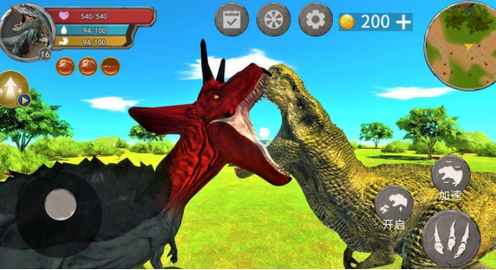 开放世界生存对抗玩法,玩家选择恐龙形态进入史前岛屿。地图涵盖火山裂谷、干涸河床、沙丘绿洲等多元地貌,支持自由探索与资源采集。通过吞噬小型动物积累能量实现体型进化,同时可锻造骨矛、石斧等原始工具应对突发威胁。PvP实时对战机制让每一场遭遇都充满策略变数。