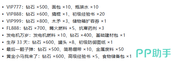 为降低入门门槛,官方持续更新实用型福利资源。以下为《生存33天》礼包码2026最新可用批次,覆盖新老用户,建议第一时间兑换,快速补充关键养成材料。
