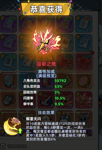 该宠物提供全队攻击、防御、生命值三项基础属性加成,且拥有8角色攻击特效。其主动技能“瞬雷天闪”可对至多10名目标施放雷击,单次伤害系数为312%,攻击频率为每0.8秒一次,总计触发6次落雷。每次命中将使目标随机陷入0.5秒麻痹状态,受控单位在后续3秒内承伤提升6%。