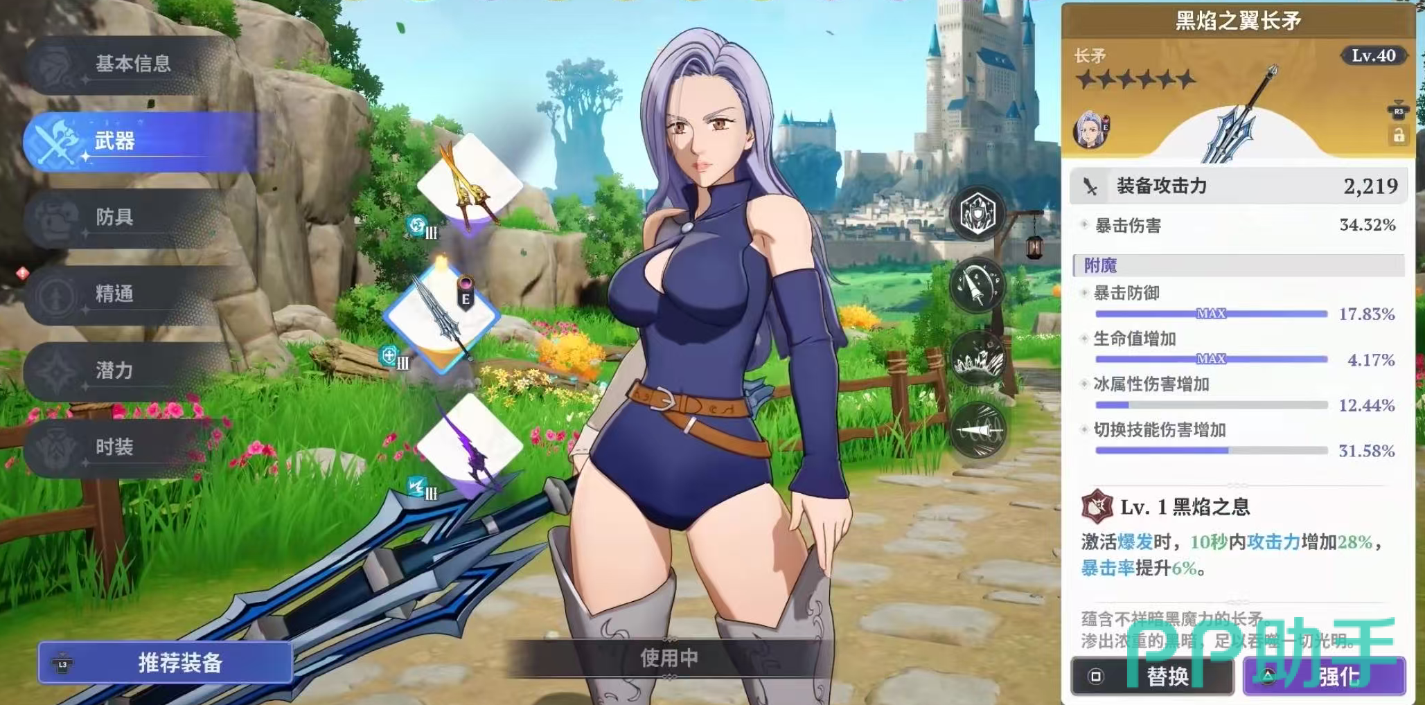 理解杰莉卡的玩法,需先明确其在队伍中的职能弹性。《七大罪:起源》中角色通常划分为输出主C、副C、辅助与治疗四类定位。而杰莉卡属于典型的多模态角色——其实际定位高度依赖武器配置。游戏中每位角色可装配三把武器,杰莉卡可选双剑、细剑与长枪,三者均为冰属性,但战术价值差异显著。