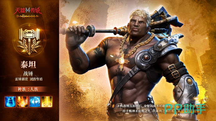 第三个为大家推荐的职业叫做泰坦,泰坦目前的话可以搭配的各种能力当中是更适合近战防御效果,所以在武器当中可以为他挑选一个战锤,在团队里面如果有泰坦的话,我方就不用担心整体的防御,后期不仅可以带来更多高血高防数值,还可以通过自身神圣祝福的能力带来一部分的减伤回血,后期在自身的驱动大招效果当中也不需要太多的蓝条,所以在这里的话,他一般在防御效果当中更适用于前排,但是也更需要团队的加成,所以新手的话,大家一定要注意给他加成效果当中带来更多防御属性的提升,然后后期在对战当中用好嘲讽能力,就可以让他在团队里面有更强的职业效果。
