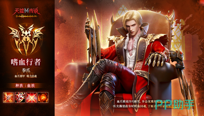 如果大家在这里选择的阵营是血族的话,那么这里第一个可以选的职业叫做嗜血行者,这个职业当中一般搭配的武器就是拳爪,因为通过近战进行输出的话,他们更多是需要突袭能力的加成,所以新手去玩的话,可以用来开荒,高生命数值附带了其他的快速回血能力,然后加上一些位移技能,是很难被人给针对到的,所以如果是玩儿他的话,建议大家很多场当中单人上场就可以了,利用瞬移技能可以快速的维持自身的一部分的效果。