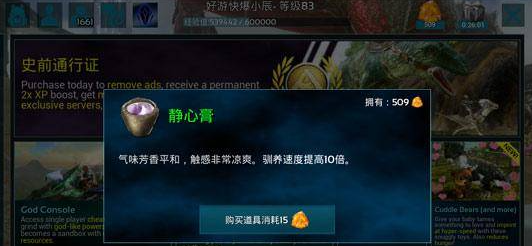 以上就是方舟生存进化手游静心膏介绍,掌握静心膏的获取途径,合理利用静心膏的效果,不仅可以使冒险之路更加顺利,也可以使整个游戏体验更加充实、有趣。静心膏属于方舟世界中一种具有神秘色彩的东西,可以给人带来的从容与自信的气质都来自它。