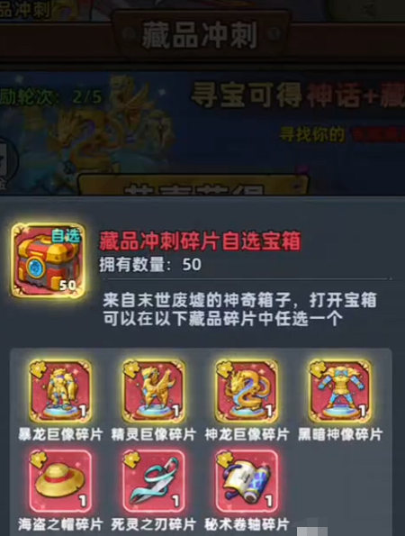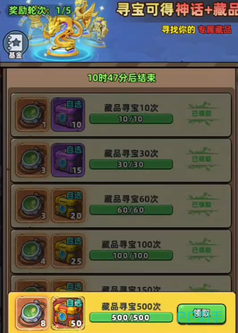 每次寻宝都有机会抽出大量藏品,另外游戏关于寻宝会设定保底,每抽取20次,有机会得到神话或者传说级别的藏品,常规抽取过程中,有机会获取普通的黄色品质藏品,建议玩家多在游戏里抽取,争取让自己得到更多高等级的藏品,连续抽取100次之后能直接获得藏品冲刺碎片自选宝箱,宝箱里面可以开出大量高等级藏品,玩家可以选择其中一个直接获取。