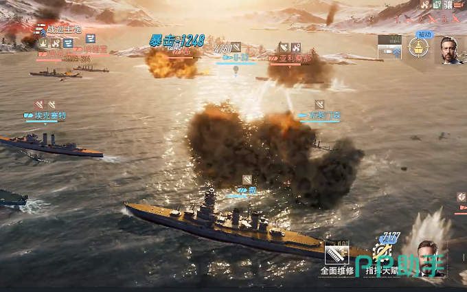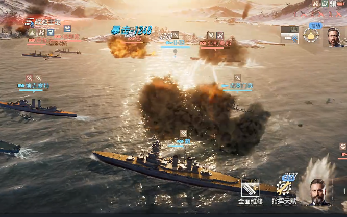 挑战过程中,玩家可以率先开炮,先行攻击,其他成员采用鱼雷对抗的时候,玩家可以及时开启鱼雷防护状态,船只有一项独特特性,主炮或者副炮造成穿甲的时候,自身的主炮攻击时间会缩短,在战斗开启之前,可以先去增加主炮穿甲率和副炮装填速度,确保船只能在对战过程中有较为优秀的表现,东桑阵营中还会有几个其他比较有代表性的船只,分别为和,作为战列舰,整体的排水量非常优秀,每次开火的时候还有机会触发连续攻击,玩家可以在对战过程中不断战斗,每次挑战都有机会提升暴击能力。
